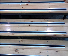 Способ монтажа: алюминиевый порожек без вставки крепится в проем между двумя напольными покрытиями или на ступени при помощи саморезов (идут в комплекте). Затем прорезиненную ПВХ вставку нужно нагреть строительным или обычным феном, либо подержать в горячей воде, чтобы материал стал мягче и легче вошел в паз профиля.